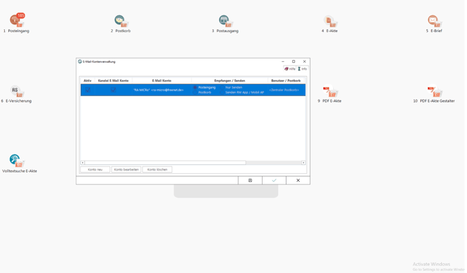 - Prüfen Sie noch mal unter E Workflow > E-Mail Konten - Ist die Mailadresse korrekt angelegt und aktiviert? Diese muss exakt mit der in der OMA-Verknüpfung verwendeten Adresse übereinstimmen.